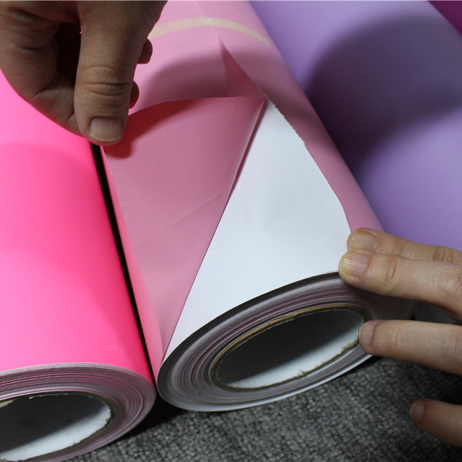 Self adhesive color vinyl is a high-quality option composed of flexible PVC (polyvinyl chloride). This type of material is known for its strength, flexibility, and weather-resistant qualities, and it can be used indoors and outdoors. It's adhesive backing allows it to stick to various surfaces such as glass, metal, plastic, wood, and more. The specially-formulated adhesive ensures a strong bond and easy application and removal.